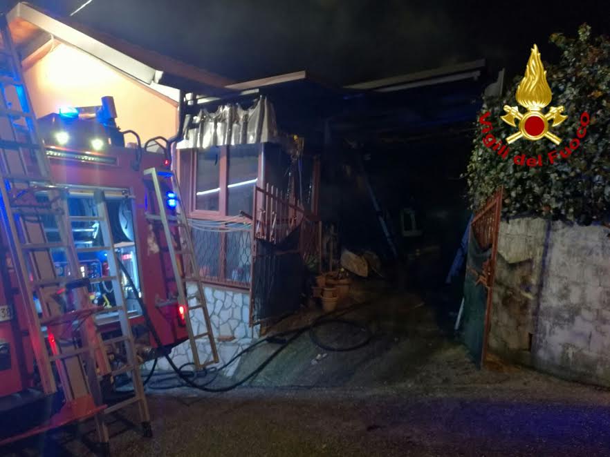 All’interno di questi locali vi erano cinque ciclomotori e sei bombole di GPL. L’incendio ha interessato anche parte del tetto.