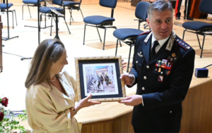 Al termine della serata, il comandante Bramati ha donato alla direttrice del Cimarosa, Maria Gabriella Della Sala, un quadro che rappresenta il forte legame dei Carabinieri con l’Irpinia, realizzato per il quarantennale del terremoto dell’Ottanta, “durante il quale – ha raccontato Bramati – l’Arma è stata al fianco delle comunità”. Al presidente del Conservatorio, Achille Mottola, sono stati invece donati lo stemma e la fiamma dell’Arma, come riconoscimento di membro onorario.