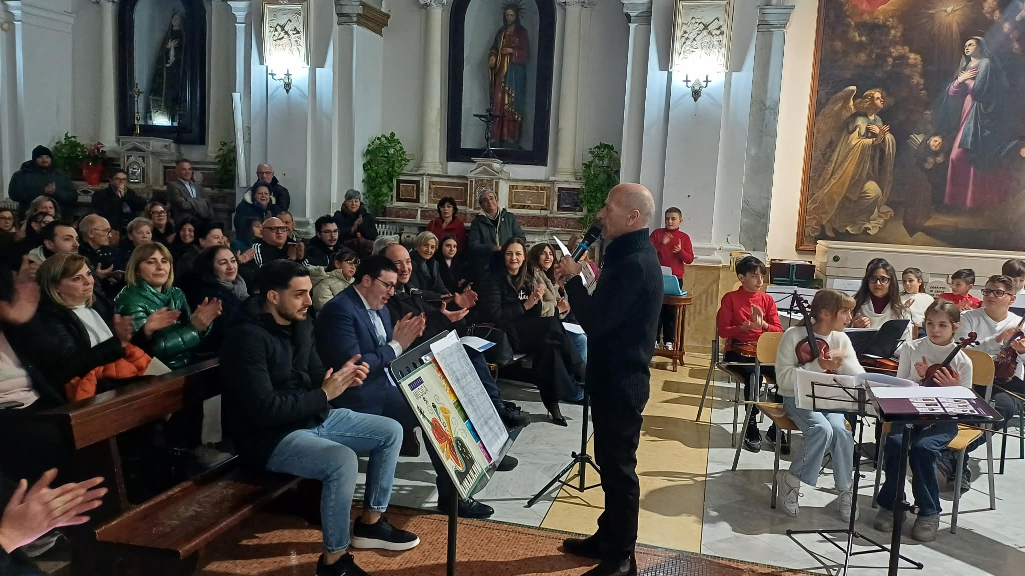 A ricordare lo spirito del Natale don Fabio Mauriello, parroco della chiesa di San Nicola che ha sottolineato come la lezione più bella che consegna la nascita di Gesù sia l’amore che ciascuno può scegliere di donare agli altri. Il concerto è stato anche l’occasione per premiare gli alunni che hanno conseguito lo scorso anno la certificazione musicale Trinity, a conferma di come l’indirizzo musicale rappresenti uno dei fiori all’occhiello dell’istituto. Bravissimi gli allievi delle classi di piano, oboe, violino e violoncello che hanno reinterpretato i brani della tradizione di Natale, da Astro del Ciel a Fratello Sole-Sorella Luna, con il pubblico chiamato a cantare per accompagnare i giovani musicisti.