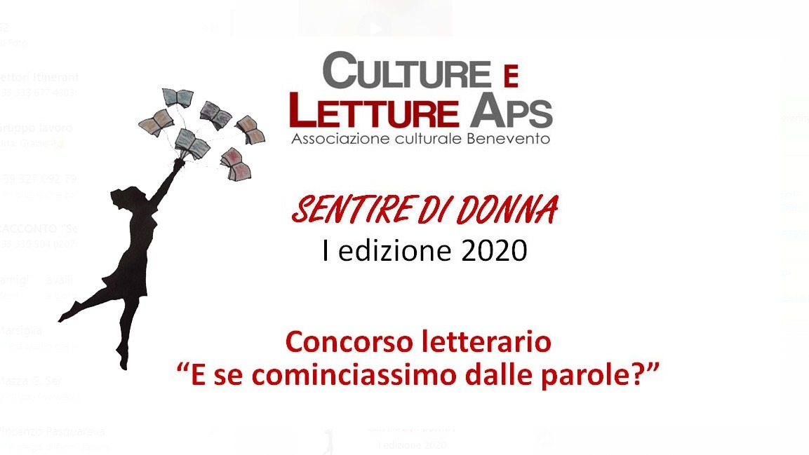 La prima edizione del concorso “Sentire di donna” giunge al termine registrando un grande successo per le adesioni ricevute. Circa cento, infatti, i lavori tra poesie e racconti brevi, provenienti da tutta Italia. Questi i risultati: per la sezione Poesia Primo premio a Francesca Falco di Avellino per “Le parole (sui bordi di una mascherina)” con 495 voti e la seguente motivazione: “Per aver dato la giusta importanza alle parole che donano risposte, incoraggiano, sostengono nei momenti bui” Secondo premio a Stefania Siani di Cava ‘de Tirreni (SA) con “E quindi scrivo” con 491 voti e la seguente motivazione: ““Per essere stata capace di ‘lasciar cadere le parole’ intanto che la consapevolezza del dubbio diventi atto creativo della scrittura” Terzo premio a Patrizia Francioso di Racale (LE) per “Ho dismesso le parole” con 466 voti e la seguente motivazione: “Per aver fatto intuire che spesso ha un senso ‘dismettere le parole’ perché gli occhi sanno leggere oltre e dare risposte” Menzione speciale a Tiziana Monari di Prato per “Roots (a Frida Khalo)” classificatasi al quarto posto con 465,5 voti Seguono a pochi punti di distanza 5 posto Maria Clotilde Cundari 6 posto Cinzia Manetti 7 posto Luisa Di Francesco 8 posto Monica D’Angelo 9 posto Angela Niro 10 posto Fiorenza Finelli Seguono a pari merito gli altri 49 partecipanti, in ordine alfabetico di NOME Adele Denza, Alla Melnjchuk, Anastasia Laurelli, Angela Iacobucci, Anna Maria Di Lorenzo, Anna Maria Parente, Anna Rita Lisco, Antonella Fusco, Antonio Barracano, Antonio Biancolillo, Antonio De Simone, Carmelina Di Paola, Danuta Anna Kida, Donatella Bosio, Elena Righi, Eleonora Marrone, Fabrizio Ciccarelli, Filippo D’Aiello, Fulvio Fiorito, Gianmaria Trotta, Gianni Romaniello, Giosy Noto, Giulia Di Lorenzo, Giuseppe Altimare, Giuseppe Mandia, Grazia Luongo, Leda Di Nuzzo, Letizia Caiazzo, Liliana Tuozzo, Manuela Roberti, Maria Concetta Preta, Maria Di Massa, Maria Rosaria Cardone, Maria Tommasa Primavera, Martina Casanova Fuga, Nicoletta Spinozzi, Raffaella Agosto, Rodolfo Andrei, Rosa Antonucci, Rosanna Giovinazzo, Sabrina Teodori, Salvatore Colucci, Santina Paradiso, Simona Campitelli, Teresa Fabiano, Teresa Stringa, Veruska Veruani, Vincenzo Galluzzi, Vincenzo Parato Per la sezione Racconto breve: Primo premio a Maria Concetta Preta di Vibo Valentia per “Una donna negata” con 491,5 voti e la seguente motivazione: “Per essere riuscita a descrivere con delicatezza e profonda rabbia, apparentemente sopita, ‘la fame d’amore’ che porta all’alienazione, alla morte Secondo premio a Federica Formato di Benevento per “Sono solo parole, dicono” con 476 voti e la seguente motivazione: “Per aver affrontato il tema del giusto uso delle parole che ‘non sono solo parole’ mettendo l’accento sugli stereotipi di genere Terzo premio a Gerardo Fiorillo di Benevento per “L’alba dei miracoli” con 455 punti e la seguente motivazione: “Per aver attraversato, a passi leggeri e animo dolente, gli imperscrutabili sentieri della densità del dolore in attesa ‘dell’alba dei miracoli’” Menzione speciale a Natalia Caggiano di Montecalvo Irpino (AV) per “Io volevo solo sentire e farmi sentire” con 448 voti. Seguono a pochi punti di distanza 5 Posto Adele Denza 6 Posto Zaira Mainella 7 Posto Sandra Petroccia 8 Posto Lauretta D’Angelo 9 Posto Liliana Tuozzo 10 Posto Isabella Castelluccio Seguono a pari merito gli altri 26 partecipanti, in ordine alfabetico di NOME Alla Melnjchuk, Anastasia Laurelli, Anna Maria Di Lorenzo, Anna Rita Lisco, Aurora Zappa, Donatella Intorcia, Elena Nugnes, Emilia Tartaglia Polcini, Esther Buonanno, Fabiana Grassi, Filippo D’Aiello, Francesca Falco, Giovanni Savignano, Giuseppe Pugliese, Giuseppina Rinaldi, Letizia Caiazzo, Lucy Tresca, Maria Di Massa, Maria Grazia Bergantino, Maria Grazia De Castro, Maria Pia Bonavita, Maria Tommasa Primavera, Miriam Cervellin, Nicoletta De Lellis, Ornella Verusio, Rodolfo Andrei I sei vincitori del concorso, causa emergenza Covid 19, riceveranno via mail un attestato di partecipazione e tramite posta un’opera d’arte offerta dall’artista Antonella Botticelli, autrice del logo della manifestazione. Inoltre, le prime dieci opere di ogni categoria saranno pubblicate nei prossimi giorni sul sito dell’associazione Culture e Letture Asp Un attestato di partecipazione verrà inoltre inviato via mail a tutti i partecipanti al nostro concorso, con i nostri ringraziamenti. Un ringraziamento speciale va ai membri delle giurie entrambe presiedute da Enrico Cavallo, presidente dell’Associazione Culture e Letture Aps. I componenti della giuria per la poesia sono stati Milena Di Rubbo, Fondatrice dell’associazione culturale “Amarte” (2008); fondatrice e membro del gruppo di poesia performativa “Voci Confinanti”; Gioconda Fappiano, docente, scrittrice, poetessa; Lucia Gaeta, Fondatrice ed organizzatrice concorso poetico dedicato agli innamorati “Premio San Valentino – Città di Atripalda”, curatrice del concorso concorso a tema religioso denominato “Ai tuoi piedi”, dedicato alla Madonna di Montevergine. Presidente e fondatrice di ACIPeA – Associazione Culturale Italiana Poeti e Artisti; Maria Grazia Nazzaro, docente di matematica che ha dedicato la sua vita alla sua grande passione, la lettura, è autrice di raccolte di poesie. I componenti della giuria per la narrativa: Patrizia Bove, Presidente dell’Associazione Massimo Rao; Tiziana Iannelli, membro fondatore del gruppo di letture Lettori Itineranti – Leggere per Leggere; Alda Parrella, presidente dell’Associazione Exit Strategy Asp; Loredana Russi, medico con due grandi passioni: la medicina e la lettura. Le giurie hanno espresso i voti senza conoscere il nome degli autori che sono stati rivelati solo a graduatoria completata. Tutte le operazioni di gestione del concorso sono state condotte da Elide Apice Vice Presidente dell’Associaz