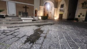 All’inizio sono poche gocce, poi come è avvenuto già due volte sicuramente solo dall’inizio dell’anno, si crea anche qui un effetto piscina sotto ai basoli di pietra del centro del paese. Anche qui il problema è evidente non era solo limitato alla parte interessata dagli interventi. Due punti da mesi ormai frequentemente visitati dai tecnici dell’Alto Calore e dalle squadre di manutenzione che vengono destinate ad effettuare gli interventi, che, senza avere sicuramente la competenza di un tecnico, ad occhio e croce rischiano di non essere mai risolutivi. Non è finita qui. Solo stando alle segnalazioni infatti, ci sono altri due punti, tutti e due a pochi metri di distanza e sulla stessa strada, dove le perdite ormai sono visibili a tutti. Si tratta di una delle traverse di Via Frate Agostino da Casoria (foto 3 e 4).