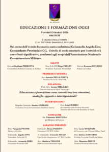 Si terrà venerdì 13 marzo 2026, alle ore 10:30, presso il Circolo della Stampa di Avellino, l’evento formativo dal titolo “Educazione e formazione oggi”, promosso dall’Associazione Nazionale Commissariato Militare (ANACOMI). L’incontro rappresenterà un’importante occasione di confronto tra istituzioni, mondo accademico e rappresentanti delle forze dell’ordine su un tema centrale per la società contemporanea.