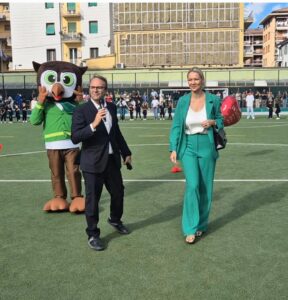 AVELLINO- Insieme. Questa è la parola d’ordine dell’anno scolastico che si è aperto questa mattina al Convitto di Avellino. Insieme come gli alunni di ogni età, dalla primaria al Liceo, che si sono stretti in un cerchio formato da 210 studenti, simbolo di questa vera e propria connessione reciproca e di un percorso formativo in cui saranno tutti i ragazzi di ogni età a condividere l’esperienza scolastica. Uno start scandito da immagini simbolo della giornata di accoglienza, denominata “Convittiamo Insieme”, quella che insieme al dirigente scolastico Attilio Lieto ha visto la presenza del sindaco di Avellino Laura Nargi. Due figure di riferimento per i ragazzi in questo percorso comune. La scuola ma anche la famiglia. Così alla manifestazione nel campetto dell’istituto dove gli studenti hanno inaugurato l’anno scolastico hanno potuto partecipare anche i genitori. Una mattinata scandita dalla poesia di Herman Hesse e dalla presenza di una mascotte particolare, che è stata scelta dagli stessi studenti del Liceo. La mascotte ideata graficamente dall’alunno Pasquale Guerriero è ispirata alla nottola di Minerva, simbolo di saggezza e conoscenza. La nottola di Minerva, spesso rappresentata come una civetta, è emblematica della capacità di vedere ciò che è nascosto e di comprendere profondamente il mondo, qualità attribuite alla dea romana Minerva. Inoltre, il colore verde utilizzato per la mascotte è rappresentativo della nostra città e degli spazi scolastici. Questo colore simboleggia la crescita, la vitalità e l’ambiente naturale che ci circonda, riflettendo il nostro impegno verso l’educazione e la sostenibilità. Unendo questi elementi, la mascotte non solo incarna saggezza e conoscenza, ma anche il legame con la comunità e del Convitto.