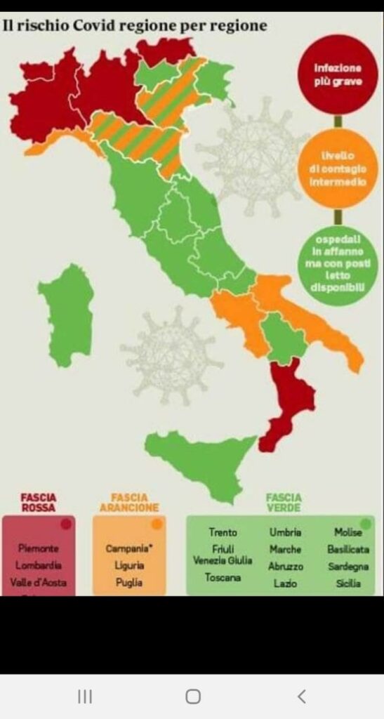 Campania, Liguria e Puglia sono in zona arancione, anche se, a quanto pare, la Campania si sta avviando verso la zona rossa.