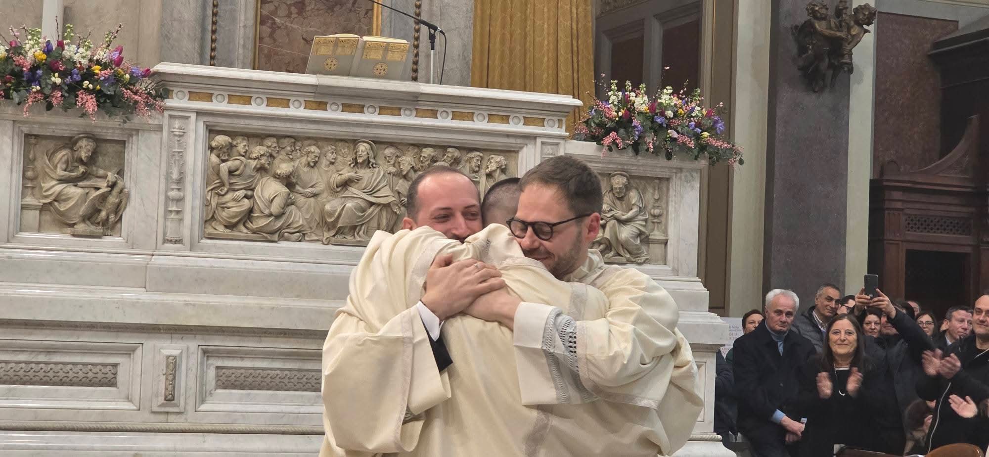 NOLA- La Chiesa di Nola ha celebrato nel giorno dell’Annunciazione, l’ordinazione diaconale agli accoliti Carmine Eposito, Francesco Pacia e Italo Prisco. Da questa sera sono diaconi e continueranno il loro cammino nel Seminario Vescovile di Nola. “Il Verbo è obbedienza. Mentre noi cerchiamo l’affermazione della nostra volontà, il Verbo di Dio offre una donazione totale di sè, riflettendo l’amore tra il Padre e il Figlio – ha detto il vescovo Francesco Marino, durante l’omelia -. Ecco il senso delle parole di Maria: “Sono la serva del Signore”. Parole che dovrebbero essere di ciascuno di noi, per un Chiesa che sia segno di salvezza. Viviamo così, per affermare la volontà di Dio per noi perché sappiamo che siamo solo un segno del suo amore”. Una giornata di festa per la comunità religiosa di Taurano. Francesco Pacia, trentasette anni, è originario di Taurano , della parrocchia San Michele Arcangelo. Dottorato in Letteratura latina medievale presso l’Università di Salerno, dopo aver conseguito il Baccalaureato in Sacra Teologia alla Pontificia Università Gregoriana, attualmente sta portando avanti gli studi di patrologia presso il Pontificio Istituto Patristico Augustinianum. Sta svolgendo servizio pastorale presso la parrocchia romana San Basilio Magno.