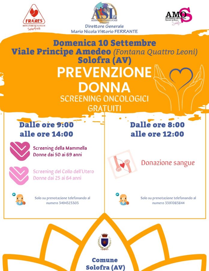 Pertanto domenica 10 settembre a Solofra in Viale Principe Amedeo (Fontana Quattro Leoni) si terrà la giornata di prevenzione promossa dall’ASL di Avellino, guidata da Mario Nicola Vittorio Ferrante, dall’Amos di Solofra e da Fratres Donatori di sangue Solofra.