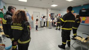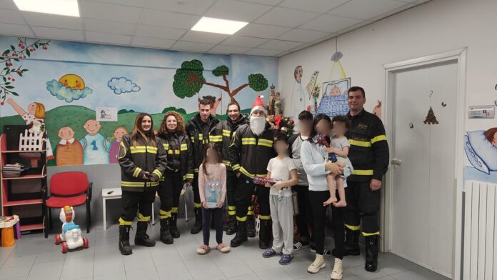 ARIANO IRPINO- Questa mattina i Vigili del Fuoco del Distaccamento di Ariano Irpino hanno svolto un intervento speciale, facendo visita ai bambini ricoverati nel reparto di pediatria del Presidio Ospedaliero Sant’Ottone Frangipane. I piccoli pazienti sono stati svegliati da un “Babbo Natale” davvero speciale, che, accompagnato da una delegazione di aiutanti e dal personale medico, si è presentato all’ingresso del reparto per distribuire regali inaspettati.”Regalare un sorriso ai bambini è una delle cose più belle. Siamo onorati di poter portare gioia a questi splendidi bimbi, soprattutto in vista del Natale. Si tratta di un piccolo gesto, ma per noi è molto importante. Rendere un po’ più felici le feste in un reparto ospedaliero, dove ogni giorno i bambini sono seguiti con amore e professionalità dal personale medico e infermieristico, è un’emozione bellissima. Un grazie speciale a loro e anche alla Direzione dell’Ospedale, che ha permesso la consegna dei regali, e al Comando di Avellino che ha promosso questa iniziativa”, commenta così il neo Capo Distaccamento, a nome di tutti i Vigili del Fuoco di Ariano Irpino.