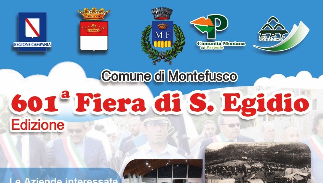 Dopo il grande successo dell’anno scorso, ritorna a Montefusco dal 28 al 30 agosto la Fiera di S.Egidio, quest’anno alla sua 601^ edizione. L’evento fieristico, da sempre parte delle tradizioni più antiche e popolari del borgo irpino è promossa e organizzata dall’Amministrazione Comunale di Montefusco, con il patrocinio della Regione Campania, la Provincia di Avellino, la Comunità montana del Partenio, e l’EPT di Avellino.