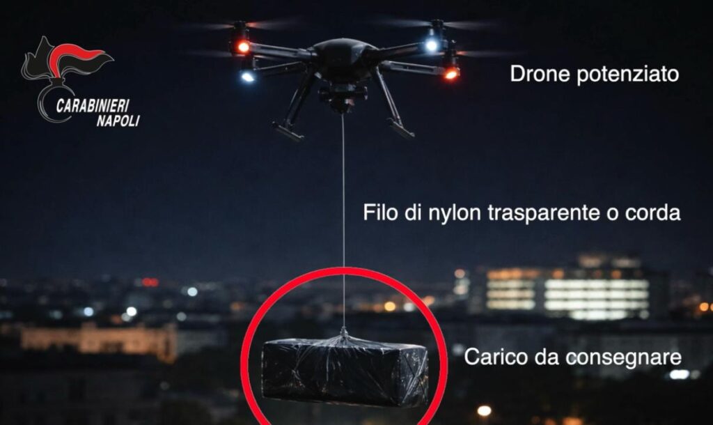 NAPOLI- Un drone con un filo di nylon al quale era legata una busta. Dentro 3 smartphone, 200 grammi di hashish e circa 4 di crack. È l’ultima spedizione finita fuori rotta, in strada e poi nelle mani nei Carabinieri piuttosto che in quelle di detenuti del carcere di Poggioreale. L’ennesimo rinvenimento nell’area che circonda il carcere a ridosso del Centro Direzionale. Non un episodio isolato, ma indicatore chiaro di un fenomeno ormai strutturato. L’uso dei droni è sempre più sistematico e consente alla criminalità di aggirare le misure di sicurezza penitenziaria e mantenere collegamenti illeciti con l’interno degli istituti. Il dato più serio è proprio questo: non conta soltanto ciò che viene intercettato o precipita prima di arrivare a destinazione, ma ciò che questi episodi rivelano sul piano organizzativo.