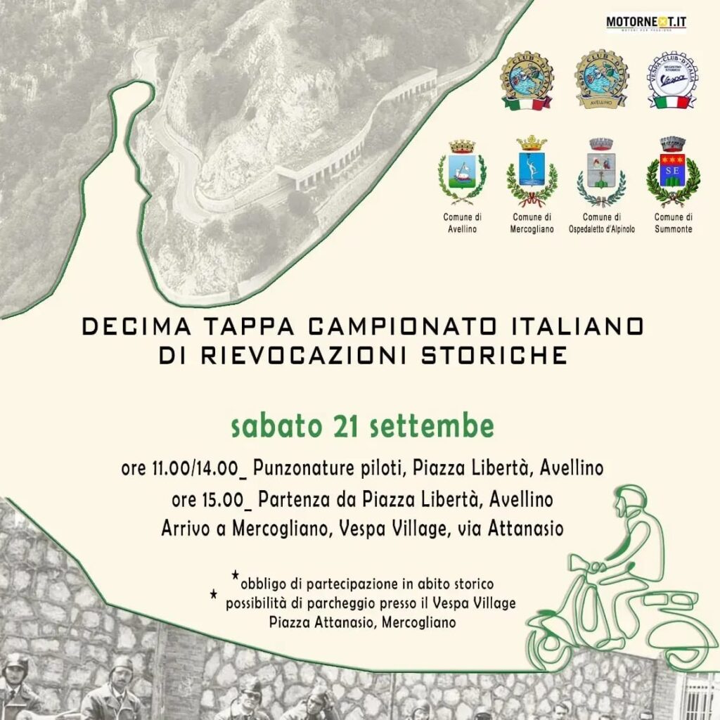 Saranno gli organizzatori del Vespa Club Avellino e i rappresentanti dei comuni a svelare i dettagli della due giorni che prevede, sabato 21 settembre, la Decima Tappa Campionato Italiano di Rievocazioni Storiche e domenica 22 settembre il Raduno Nazionale a Partecipazione Estera Campania.