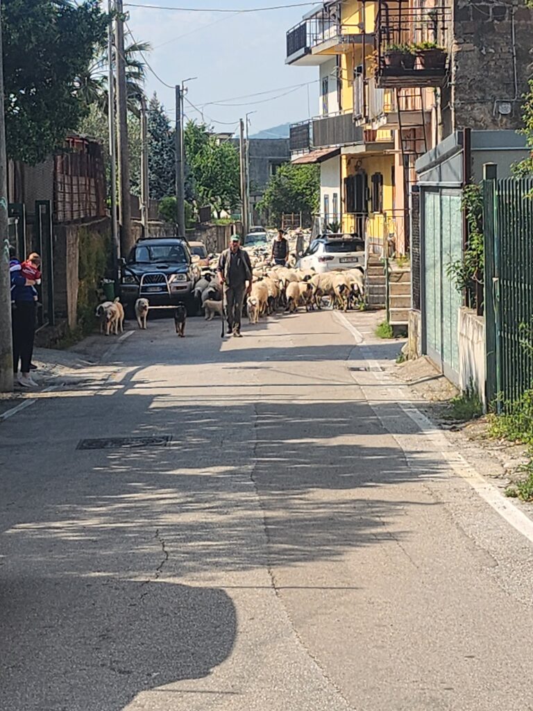 VALLO LAURO- E’ tempo di transumanza e come ogni anno si ripete per la migrazione stagionale di greggi e mandrie dai pascoli di pianura a quelli di montagna. Come testimoniano le immagini del gregge di una particolare pecora, la “turchessa” che e’ stata salvata dell’estinzione grazie al lavoro di un giovane allevatore del Vallo di Lauro, Valentino Forino. Nel primo pomeriggio, come vuole questa antica pratica di pastorizia, riconosciuta come Patrimonio Culturale Immateriale dell’Umanità dall’UNESCO nel 2019, il gregge ha lasciato la zona di pianura del Vallo di Lauro, attraversando anche in parte il centro abitato, ma in particolare le strade di campagna. Un percorso lungo, che attraverso la strada che conduce in localita’ San Teodoro e poi la zona di Vallefredda, condurrà il gregge in localita Santa Cristina, la montagna in territorio di Moschiano attraversando un tratturo che condurrà il gregge fino, dove alternandosi con altre zone sempre di montagna, il gregge resterà per tutto l’estate. Uno spettacolo che piace tanto anche ai bambini. Quest’anno, oltre agli allevatori, ha voluto partecipare insieme al suo compagno al rito della transumanza anche Maria Jose’, pittrice con la passione dell” escursionismo da un po in Italia.