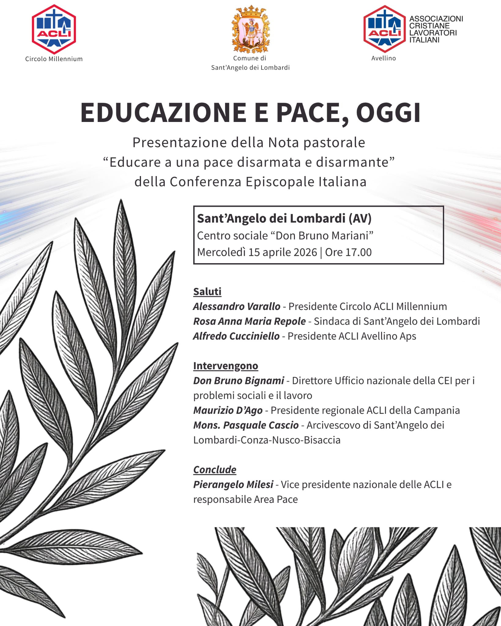 “Educare a una pace disarmata e disarmante”, a Sant’Angelo dei Lombardi l’incontro pubblico a cura delle Acli e della Conferenza Episcopale