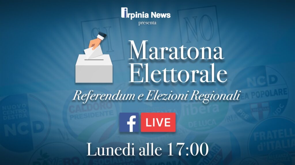 Nuovo sforzo editoriale della redazione di Irpinia News diretta da Ilenia Gubitosa per le elezioni in programma domenica 20 e lunedì 21 settembre. Dopo i consensi registrati dalla trasmissione “Un caffè col candidato” – format informale andato in onda per un mese in diretta sulla nostra pagina facebook ogni lunedì e giovedì, tranne l’ultima settimana, quando le dirette sono state quotidiane – , lunedì pomeriggio, qualche ora dopo la chiusura dei seggi, prevista per le 15, si terrà la “Maratona elettorale” di Irpinia News.