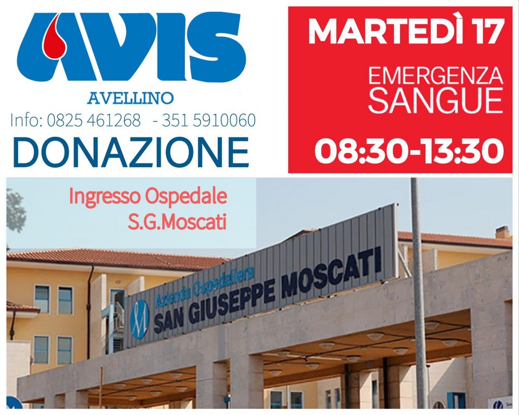 Martedì 17 dalle 8:30 alle 13:30 presso l’ospedale Moscati di Avellino.