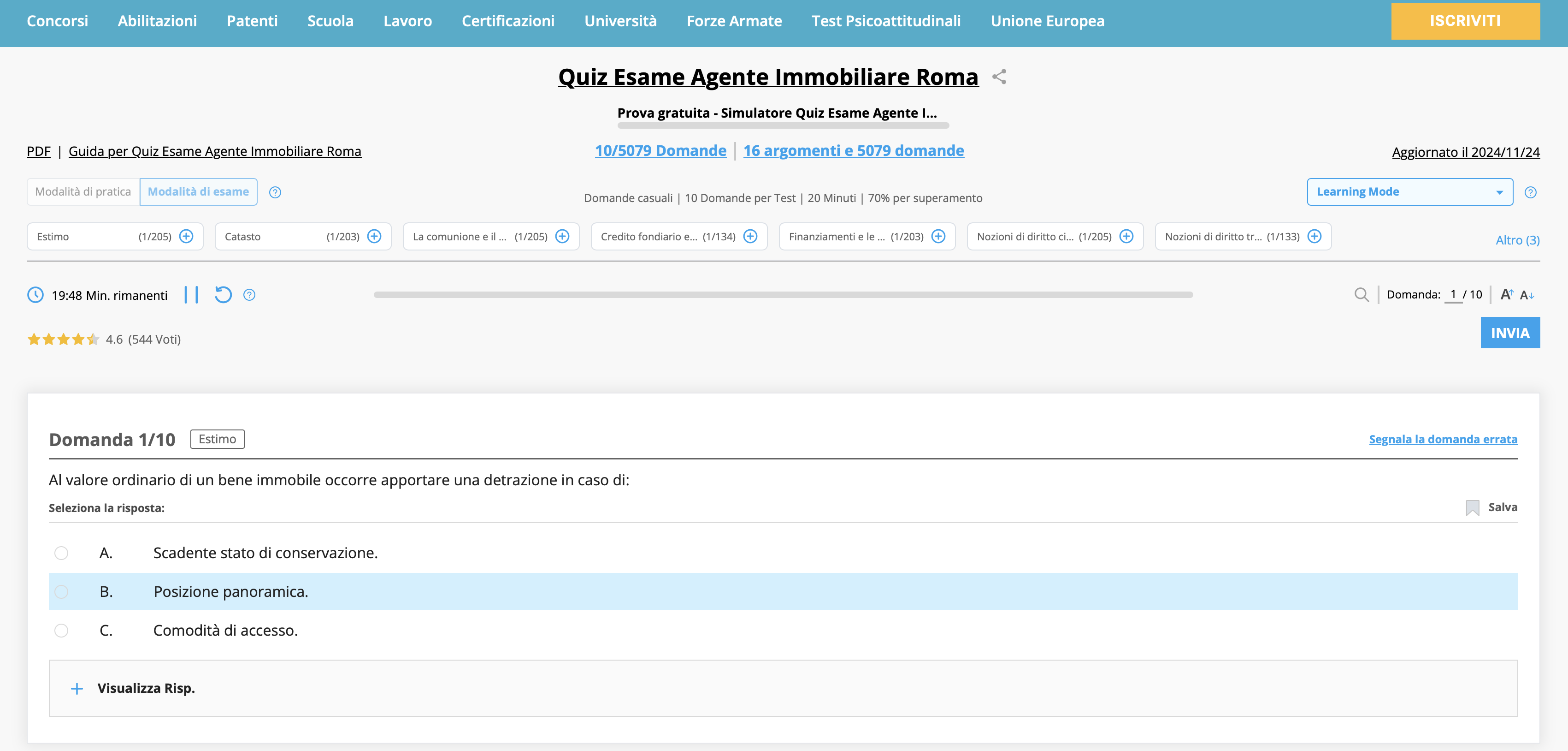 Esperienza di studio complessiva ⭐ Completa, personalizzabile, veloce e tecnologicamente avanzata 🔸 Buon supporto allo studio con simulatore e categorie strutturate 🔸 Preparazione valida ma con strumenti meno evoluti rispetto alle piattaforme più moderne