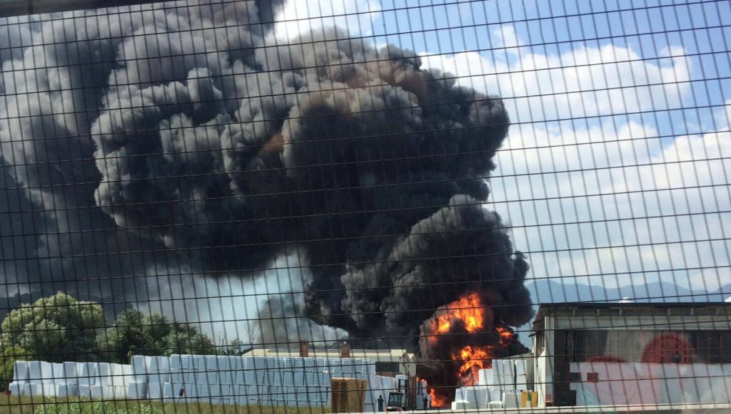 Una nube nera spaventosa si è alzata pochi minuti fa dalla ICS, Industrie Composizione Stampati, a pochi metri di distanza dalla Irpinia Calcestruzzi e dalla Denso a Pianodardine. Un inferno per i residenti della zona che sono stati evacuati. La coltre di fumo ha invaso non solo l’area industriale, ma è visibile da chilometri di distanza.