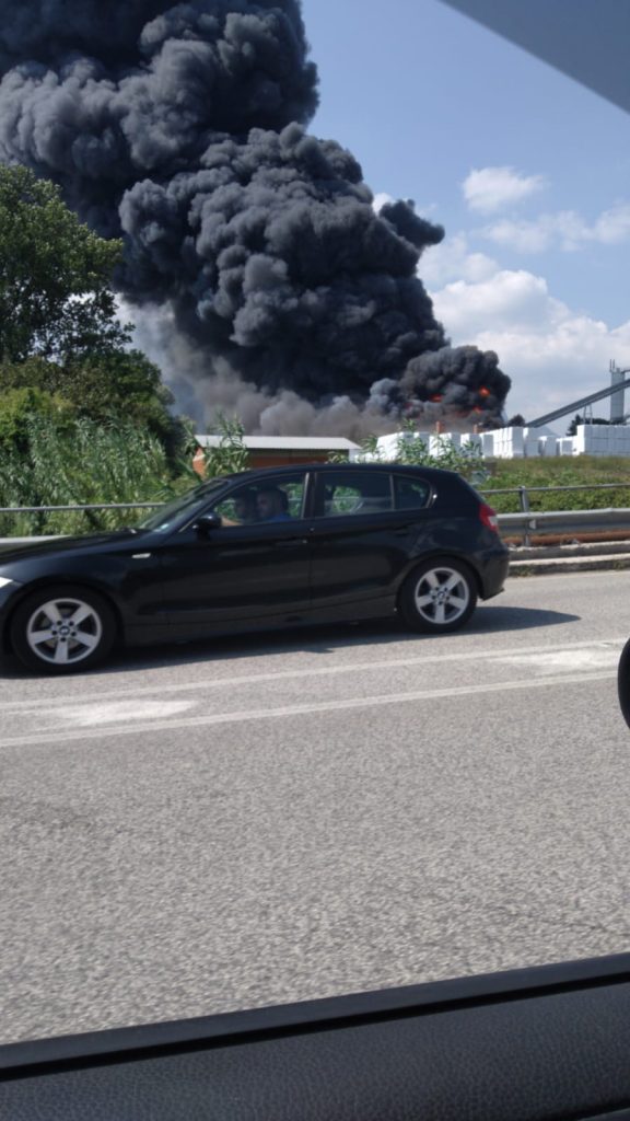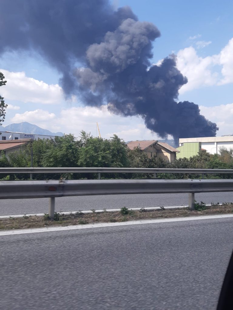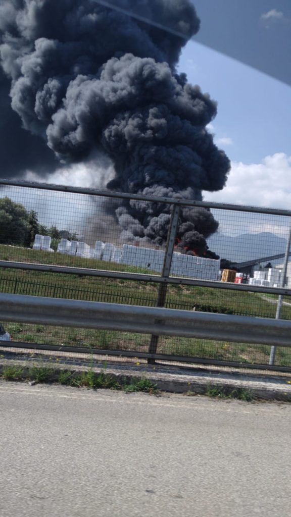 Una nube nera spaventosa si è alzata pochi minuti fa dalla ICS, Industrie Composizione Stampati, a pochi metri di distanza dalla Irpinia Calcestruzzi e dalla Denso a Pianodardine. Un inferno per i residenti della zona che sono stati evacuati. La coltre di fumo ha invaso non solo l’area industriale, ma è visibile da chilometri di distanza.