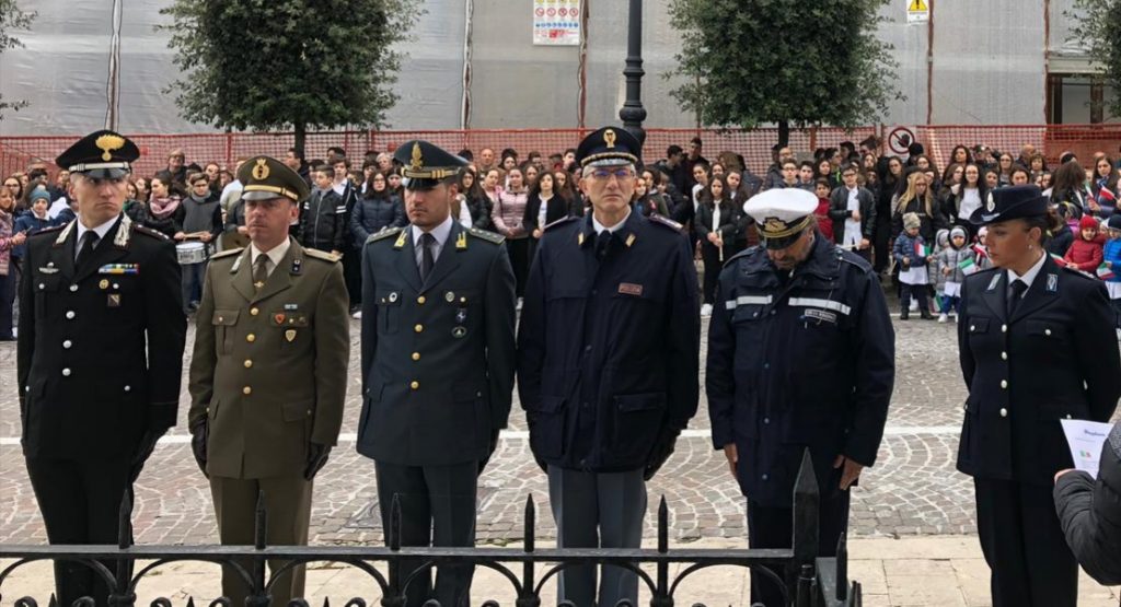 La giornata si è aperta con la cerimonia di deposizione della corona d’alloro ai caduti, l’esecuzione dell’inno nazionale a cura degli studenti dell’Istituto Criscuoli e con alcuni pensieri espressi dagli studenti. Per l’occasione c’è stata una esposizione di mezzi delle forze dell’ordine Sempre in mattinata, presso il centro di comunità, invece, si terrà una cerimonia di riflessione sui testi “I ragazzi del 99” e “Ricordi di Guerra” di Giovanni De Guglielmo.