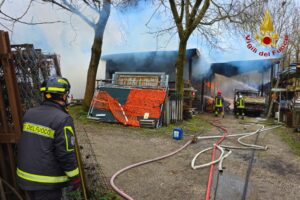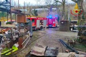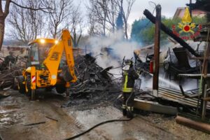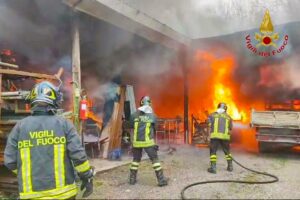 AVELLINO- Fiamme in un deposito edile in Contrada San Eustachio. Sul posto sono intervenuti i Vigili del Fuoco di Avellino e i Carabinieri di Montefredane. L’incendio intorno alle tredici. La sala operativa del Comando di via Zigarelli ha inviato sul posto due squadre, supportate da un mezzo di movimento terra, sotto la direzione del Capo turno Provinciale. Le fiamme, che hanno avvolto un capannone di circa 150 metri quadrati, hanno interessato sia materiale edile che un camion. Le operazioni di spegnimento e messa in sicurezza della struttura sono ancora in corso. Nel frattempo, i Carabinieri della Stazione di Montefredane stanno effettuando i rilievi per accertare la causa dell’incendio.