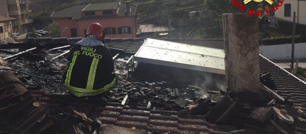 In fiamme tetto di un’abitazione, in salvo la famiglia residente