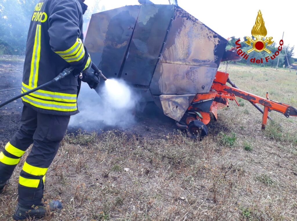 Il mezzo stava confenzionando rotoballe di fieno. Il pronto intervento ha permesso lo spegnimento delle fiamme e di alcune decine di metri di sterpaglie nei pressi. Non vi sono state persone coinvolte.