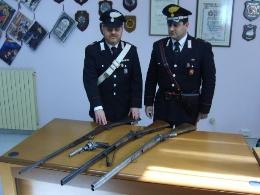 Forino – I Carabinieri della Compagnia di Baiano hanno rinvenuto e sequestrato tre fucili e una pistola detenuti illegalmente e denunciato a piede libero due persone di Forino per detenzione abusiva di armi e munizioni.
