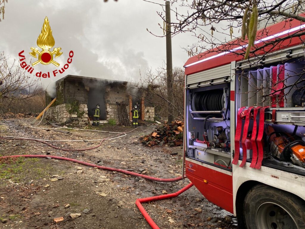 Forino, in fiamme deposito di legna: sul posto due squadre dei vigili del fuoco