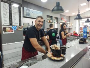 Se varchi la soglia del bar, ad attenderti non ci sono soltanto i buoni prodotti e l’ottimo caffè, ma anche il grande sorriso di Generoso Manfra, il titolare, sempre di buon umore, e la cortesia e l’eleganza della moglie Luana. “Anche se i costi aumentano pure per noi”, spiega Generoso, “non me la sento proprio di chiedere alle persone un sacrificio anche per il caffè. Bere caffè è un atto di amore, è un gesto di condivisione e anche per noi è così. Questo è il nostro atto d’amore per i clienti e per tutti coloro che vengono a trovarci”.