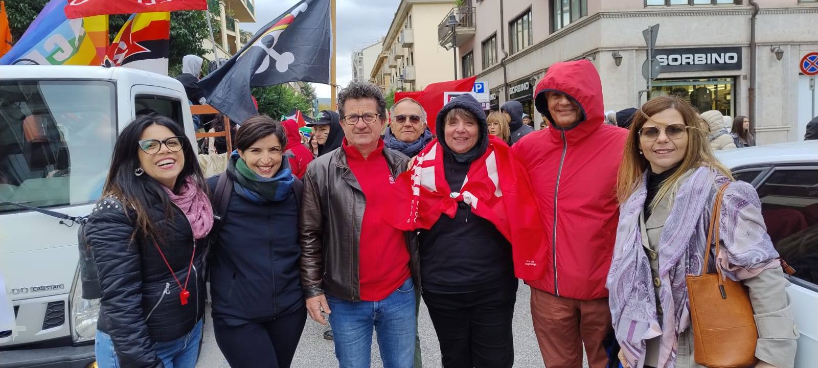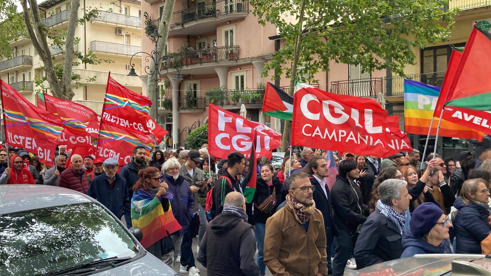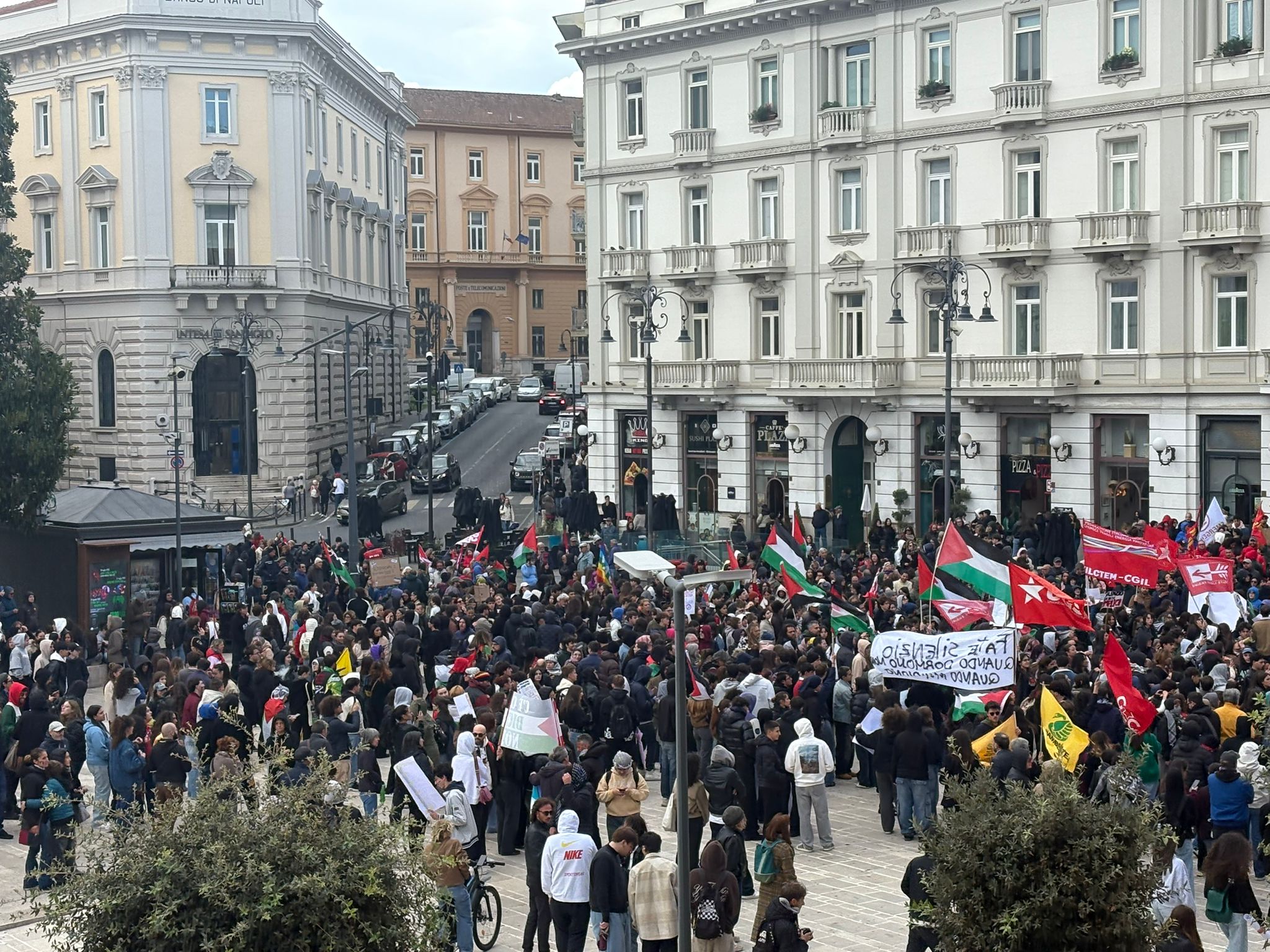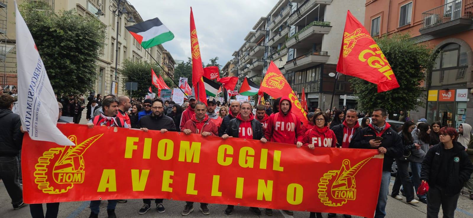 Dal corteo poi una delegazione ha raggiunto Palazzo di Governo per ribadire il sostegno agli attivisti della Global Sumud Flotilla. La manifestazione, che ha sfidato il freddo di questo inizio ottobre, è stata indetta a livello nazionale in concomitanza con lo sciopero generale proclamato dalla Cgil. Ad Avellino, in piazza c’erano la segretaria provinciale del sindacato Italia D’Acierno, esponenti del Pd come il segretario provinciale Nello Pizza e altri dem, rappresentanti di Avs, del Movimento 5 Stelle e dei Giovani Comunisti. Accanto a loro, il Collettivo Studentesco Irpino con Antonio Liuzzi, Libera con Davide Perrotta, Arci con Stefano Iannillo e tante realtà e associazioni del territorio. Al corteo anche don Vitaliano Della Sala, che aveva esposto la bandiera palestinese in chiesa. Ad Ariano, invece, in piazza anche il vescovo Sergio Melillo.