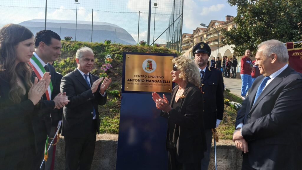 Qui, in un rione, una periferia, forse difficile ma con tanta voglia di riscatto, le fiamme oro hanno inaugurato un centro sportivo a lui dedicato. Un luogo di aggregazione utile a togliere i giovani dalla strada e a far crescere, magari, nuovi campioni. Qui c’erano il ministro Piantedosi, il capo della polizia Giannini, il prefetto di Avellino Spena, il sindaco Festa e tanti, tanti altri. Ma, soprattutto, la moglie e la figlia Emanuela che, nel suo discorso al de la Ville, ha incantato davvero tutti.