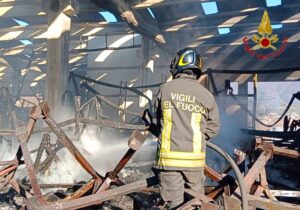 I Vigili del Fuoco di Avellino dopo circa 35 ore di lavoro hanno ultimato intorno alle ore 14:00 di oggi 15 gennaio le operazioni di spegnimento e messa in sicurezza del capannone adibito a deposito andato a fuoco nel comune di Sperone la notte di ieri.