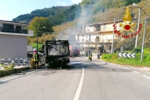 Due, come detto, le squadre che si sono portate sul posto. I caschi rossi hanno spento le fiamme che hanno avvolto interamente il bus. Per fortuna la corsa era di fine linea e quindi a bordo vi era solo il conducente, il quale ha fatto in tempo a scendere e mettersi in salvo. Oltre un comprensibile spavento, non ha subito nessuna conseguenza. Disagi per la circolazione durante le operazioni di spegnimento.