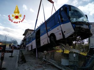 I carabinieri, supportati dai Vigili del Fuoco del Comando Provinciale di Avellino, hanno avviato le indagini per stabilire dinamica e responsabilità dell’incidente. A seguito del duplice impatto, il bus è praticamente irriconoscibile.