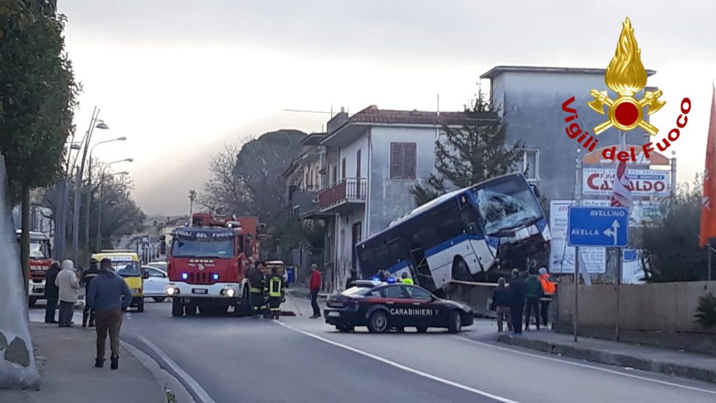 I carabinieri, supportati dai Vigili del Fuoco del Comando Provinciale di Avellino, hanno avviato le indagini per stabilire dinamica e responsabilità dell’incidente. A seguito del duplice impatto, il bus è praticamente irriconoscibile.
