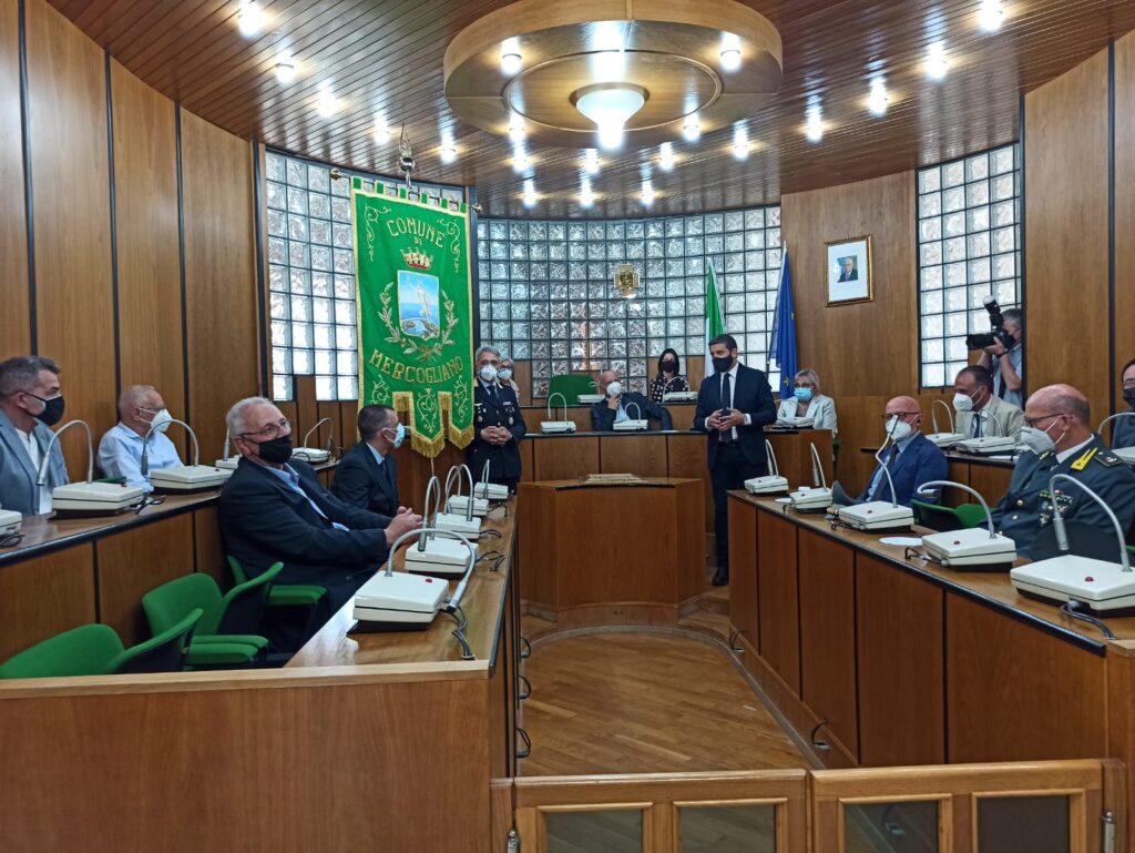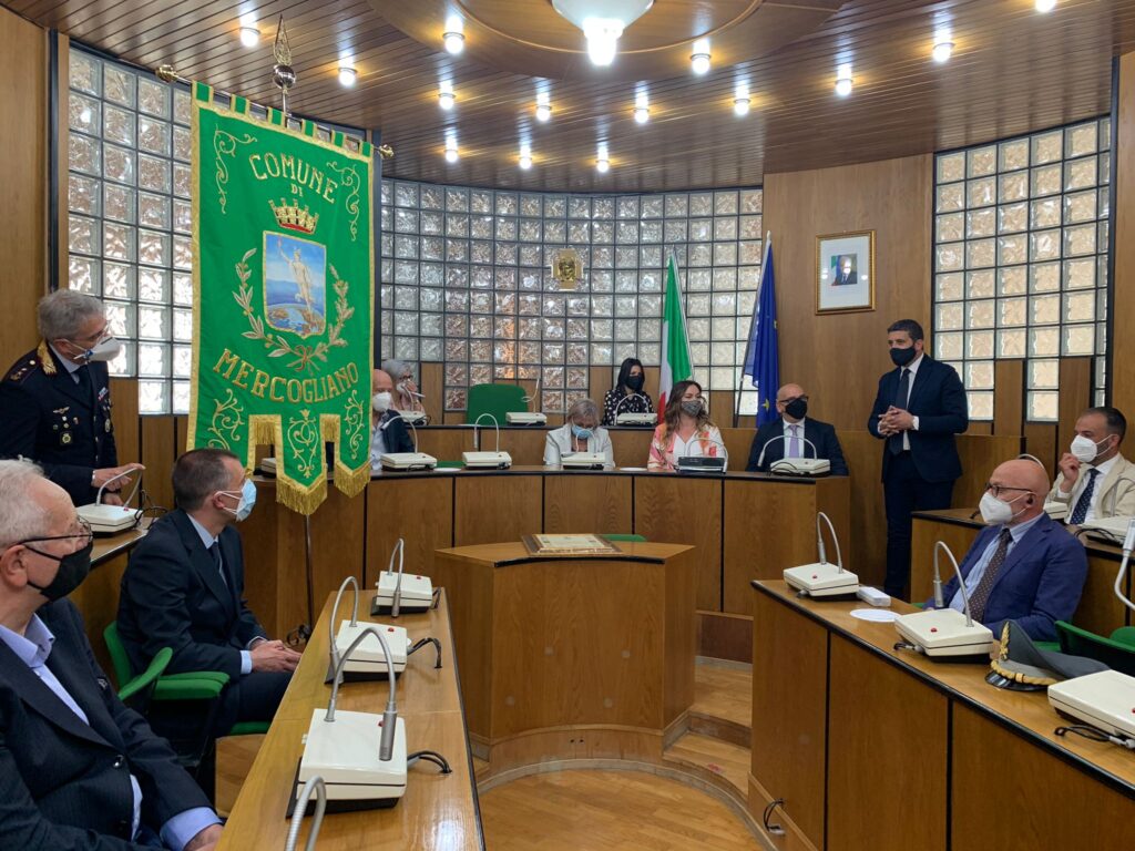 Ma il sindaco D’Alessio oggi ha voluto presentarlo presso la sala consiliare del Comune. E lo ha fatto riunendo anche i sindaci di Mercogliano che lo hanno preceduto. Hanno varcato di nuovo la soglia del Municipio, dunque, Alessandro Criscitiello, Picariello, Filomena Di Benedetto, Tommaso Saccardo e Massimiliano Carullo. L’emozione, per loro, è stata grande. Ma non solo per loro.