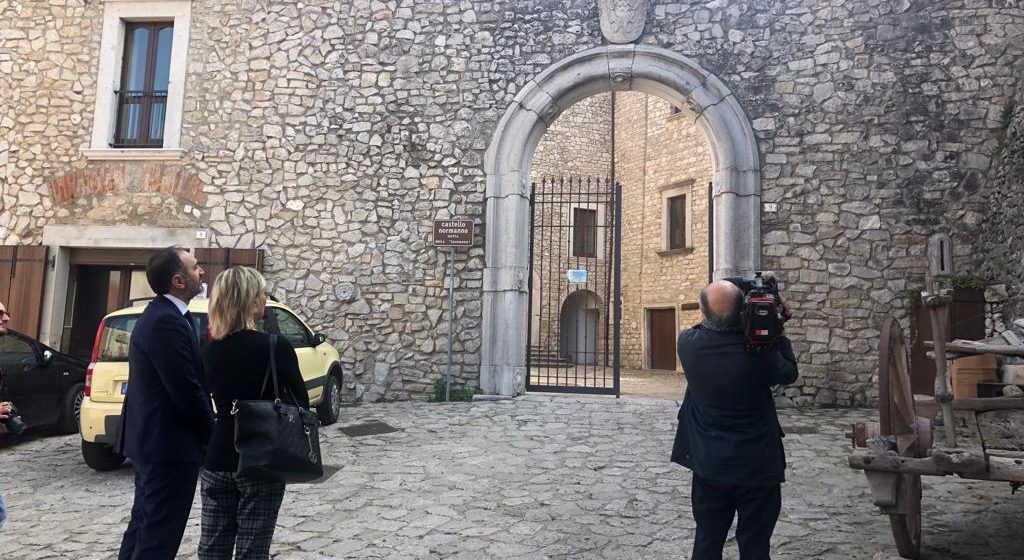 E’ la giornalista Carla Macrellino, accompagnata dalla troupe televisiva, a percorrere, sotto la guida dell’onorevole Gubitosa, i vicoli e il castello di Montemiletto.