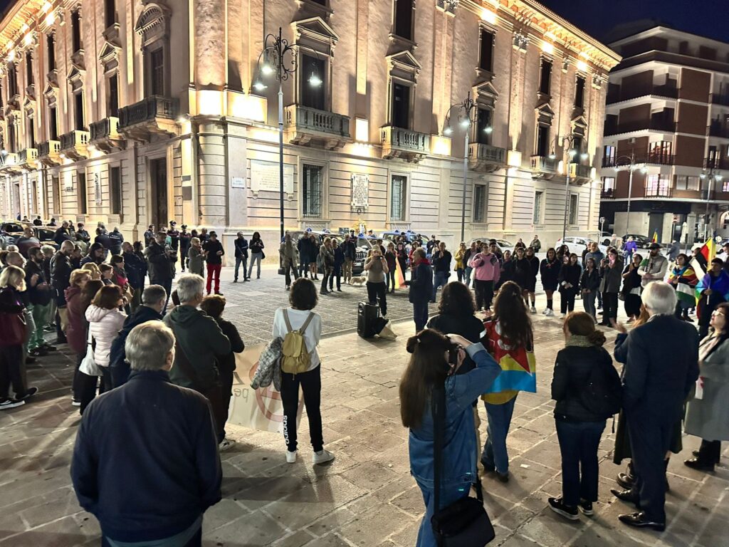 Immediato cessate il fuoco, aiuti umanitari, rilascio degli ostaggi e ripresa del processo di pace: queste le richieste degli organizzatori che hanno manifestato a piazza Libertà.