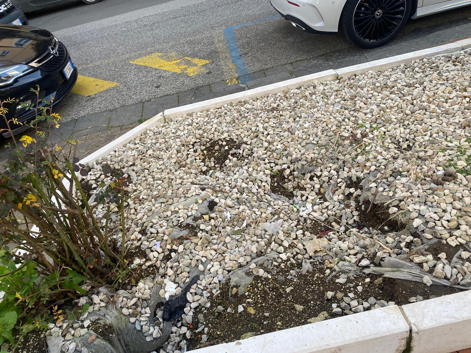 La presenza di pietre e pacciamatura non fa che aggravare la situazione: le deiezioni si insinuano tra i materiali, favorendo miasmi persistenti, proliferazione di batteri e un degrado che rende la zona intransitabile per chiunque.