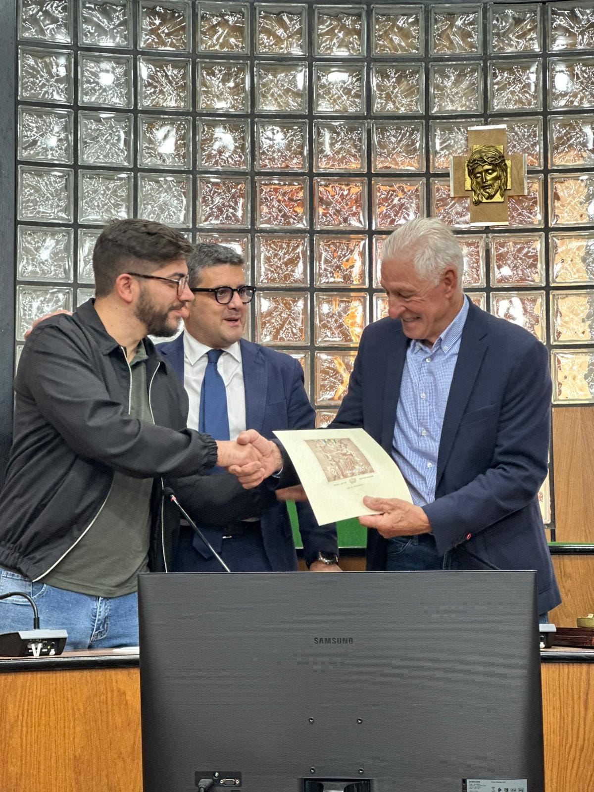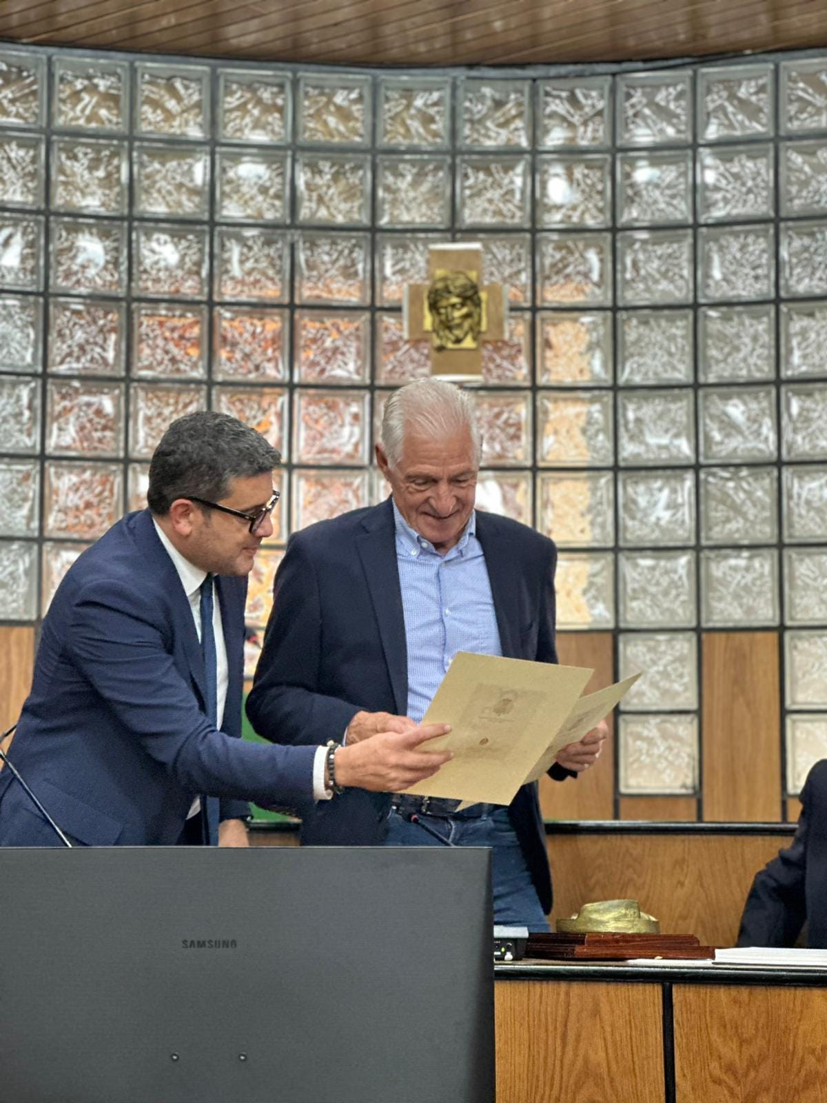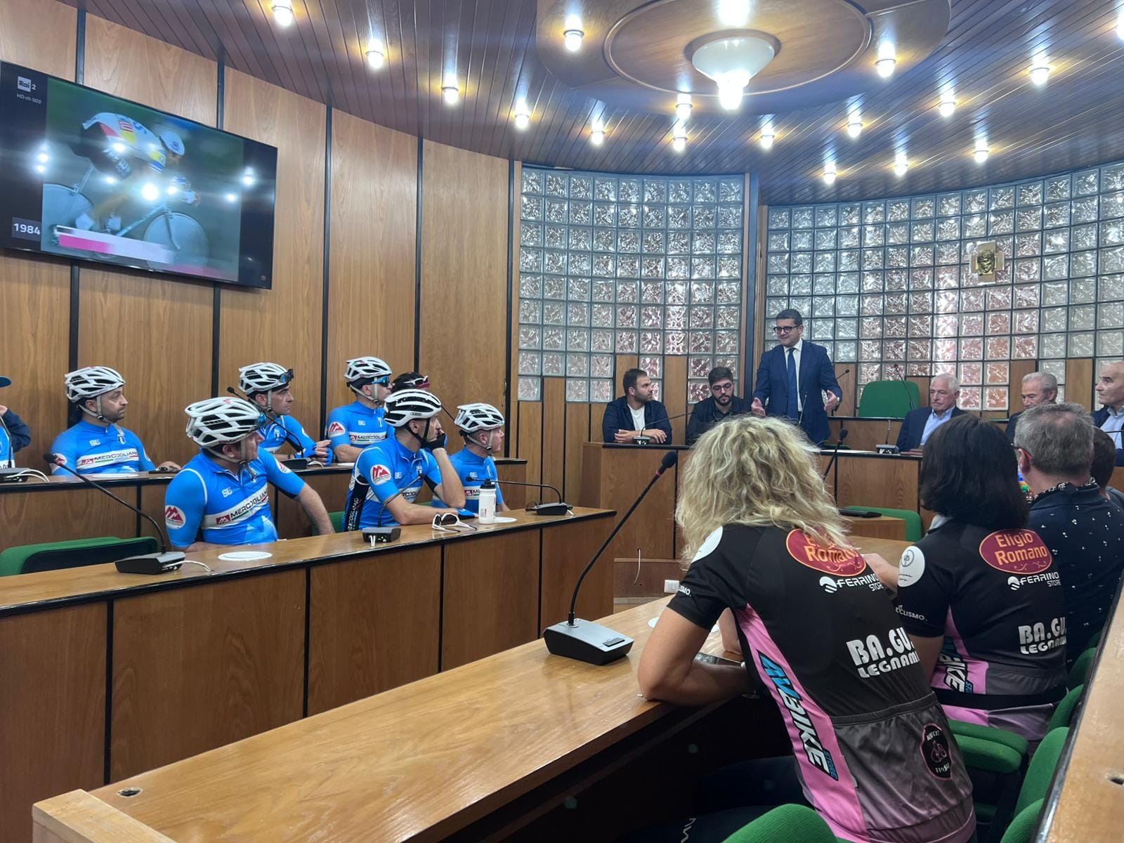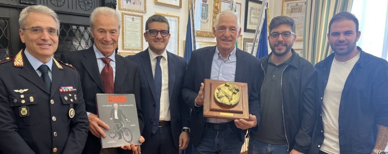 Il Sindaco, insieme all’ Assessore allo sport Giuseppe Barone e al consigliere Alberico Valente, lo ha accolto in aula consiliare, alla presenza di tanti appassionati e ciclisti irpini, con un video ricordo della sua storica vittoria al Giro d’Italia e ha consegnato al campione il Mercurio d’ oro, simbolo della città.