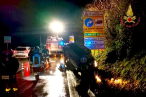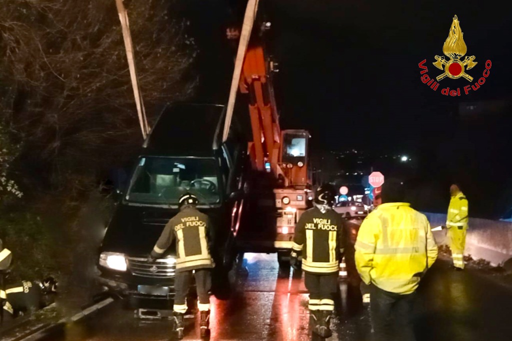 ATRIPALDA- I Vigili del Fuoco di Avellino alle ore 19’00 di oggi , sono intervenuti sul raccordo autostradale Avellino – Salerno, nel territorio del comune di Atripalda, poco distante dallo svincolo tra la Variante e il raccordo in direzione Salerno, dove un fuoristrada è sbandato ed è finito nella cunetta mettendosi di lato. Le tre persone a bordo, un nonno, il figlio ed il nipote non hanno subito grosse conseguenza tanto da essere visitati sul posto dai sanitari del 118 intervenuti, senza far ricorso al ricovero ospedaliero. Per il recupero del veicolo si è reso necessario l’intervento dell’autogru dalla sede centrale di via Zigarelli, mentre una squadra dell’ANAS si è occupata del ripristino della viabilità.