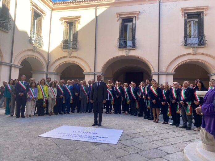 AVELLINO- L’orgoglio di ospitare un vertice internazionale con tutti i benefici che ne deriveranno e un documento in quattro punti consegnato questa mattina al ministro dell’Interno Matteo Piantedosi per segnalare le iniziative da mettere in campo per la provincia. Questo uno dei momenti salienti della mattinata a Palazzo di Governo, che ha aperto la giornata di avvio del G7 in Irpinia. Il documento è stato consegnato al titolare del Viminale al termine dell’incontro presieduto dallo stesso Piantedosi, alla presenza del prefetto Rosanna Riflesso, a Palazzo di Governo. Sicurezza, Emergenza idrica, dissesto idrogeologico e mobilita’. Ecco il testo del documento dei sindaci.