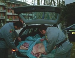 Senza soste l’attività delle Fiamme Gialle del Comando Provinciale di Avellino in questi giorni di particolare intensificazione del movimento di uomini e mezzi sulle strade dell’Irpinia. Nel primo pomeriggio odierno l’attenzione di un posto di blocco in corrispondenza del casello autostradale dell’A-16 era attirata da un’auto che, lasciando l’autostrada, alla vista dei militari frenava bruscamente quasi a tentare un’inversione di marcia. Prontamente i militari si ponevano all’inseguimento dell’autovettura che dopo poche centinaia di metri veniva fermata per il controllo. Il carico, costituito da grossi bustoni di colore azzurro, riempiva tutto il vano-bagagli del veicolo, in maniera spropositata per una vettura di quella classe (Mercedes station wagon). La perquisizione immediatamente effettuata consentiva di rilevare come lo stesso fosse costituito da ben 290 chilogrammi di carne di maiale, allegramente trasportata a bordo della vettura di lusso in assenza di qualsivoglia documentazione fiscale e/o delle prescritte autorizzazioni al trasporto di derrate alimentari. Il conducente, identificato per tale V.V. (di 30 anni), originario di Cercola (NA), non era in grado infatti di esibire alcuna autorizzazione per il trasporto di alimenti ed al riguardo dichiarava che la carne era destinata a Baiano per la successiva vendita. Lo stesso era pertanto invitato a seguire la pattuglia operante presso il Comando di via Pontieri ove i rilevamenti presso i terminali collegati con le banche-dati in uso al Corpo confermavano come a suo nome non risultasse alcun permesso per l’esercizio d’attività commerciale né tantomeno l’iscrizione presso la Camera di Commercio. La carne veniva sottoposta a sequestro amministrativo ed, in linea con la prassi ormai voluta nei casi di specie dal Comandante Provinciale, colonnello Mario Imparato, i militari avviano la particolare procedura che avrebbe poteva consentire la devoluzione in beneficienza di quanto in sequestro. Veniva quindi prima verificata la commestibilità e l’assenza di qualsiasi l’idoneità della carne in sequestro e l’assenza di eventuali motivi ostativi mediante l’intervento presso gli uffici delle Fiamme Gialle sia del Dipartimento di Prevenzione Servizio Veterinario, nella persona del dr. Michele Covelluzzi, che della A.S.L. di Avellino (dr. Giuseppe Carratù). La carne era sottoposta a sequestro non in quanto avariata ma perché trasportata in violazione al Regolamento CE nr. 882/04 (articolo 54) ed al Regolamento CE nr. 852/04 (articolo 6): la stesa veniva pertanto depositata nelle celle frigorifere della Casa della Fraternità “Monsignor Antonio Forte” (ex mensa “Don Tonino Bello”) di Avellino per la sua successiva devoluzione in beneficenza alla ricezione degli esiti delle analisi cliniche a conferma ufficiale di quanto già constatato in prima battuta dai sanitari intervenuti. Ulteriori controlli ed accertamenti sono stati avviati dalle Fiamme Gialle onde verificare tutti gli elementi attinenti la fase dell’acquisizione e la successiva commercializzazione della carne sottoposta a sequestro.