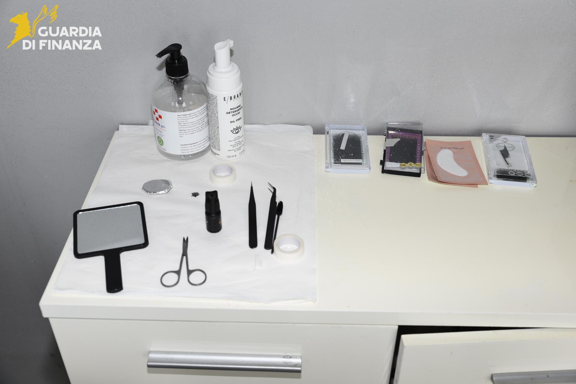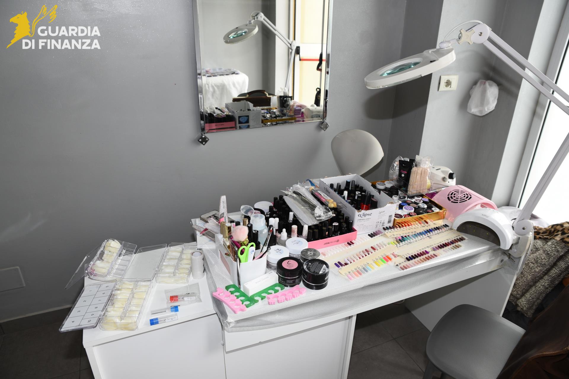 Nel corso dell’intervento, sono stati identificati i clienti presenti ed è stata acquisita la documentazione extracontabile, comprovante l’ammontare dei ricavi nascosti al fisco. L’ispezione dei locali ha inoltre permesso di accertare gravi carenze igienico-sanitarie: gli ambienti, privi dei requisiti minimi di sicurezza e salubrità, si presentavano in condizioni precarie, con strumentazioni non sterilizzate. Sono stati rinvenuti e sequestrati 4925 strumenti da lavoro, quali smalti, lime , frech pad ecc., privi di attestazioni qualitativi in termini di sicurezza per la salute, tra i quali alcuni contenenti il componente chimico TPO (Trimethylbenzoyl Diphenyphosphine Oxide), sostanza che, come previsto dal Regolamento (CE) NR. 2025/877, dal 1° settembre è vietata nell’Unione Europea, poiché trattasi di sostanza classificata come cancerogena e tossica.