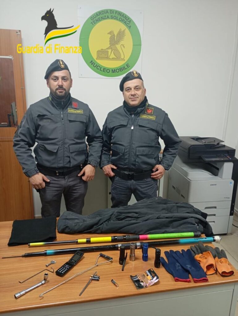 Il predetto materiale veniva sottoposto a sequestro dai militari della Tenenza di Solopaca e il soggetto veniva denunciato alla Procura della Repubblica di Benevento per possesso ingiustificato di strumenti atti ad aprire serrature.
