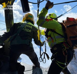 Nella giornata di ieri, le Fiamme Gialle della Stazione di Soccorso Alpino della Guardia di Finanza di Sant’Angelo dei Lombardi, a seguito di attivazione della Centrale Operativa del CNSAS, hanno operato un intervento di soccorso a favore di due alpinisti che avevano perso l’orientamento lungo la cresta del Monte Cervati, nel Parco Nazionale del Cilento, Vallo di Diano e Alburni, nel territorio comunale di Sanza (SA). Considerate le condizioni ambientali particolarmente impegnative, caratterizzate da alta quota e presenza di superfici innevate, è stato predisposto un dispositivo di ricerca articolato, in sinergia con gli operatori del Soccorso Alpino e Speleologico della Campania (CNSAS). In particolare, sono state organizzate due squadre operative: una impegnata nelle ricerche a terra, composta congiuntamente da personale S.A.G.F. e volontari del CNSAS, e una seconda squadra elitrasportata. Quest’ultima ha operato a bordo di un elicottero AW139 della Sezione Aerea della Guardia di Finanza di Napoli. L’equipaggio, individuati gli escursionisti all’interno di un canale innevato, ha preliminarmente verificato le loro condizioni sanitarie, rilevando principi sintomi di assideramento, oltre a un evidente stato di spavento. Successivamente, mediante l’impiego del verricello, ha provveduto al recupero in sicurezza dei due alpinisti. I malcapitati sono stati quindi elitrasportati in prossimità delle principali vie di accesso, dove sono stati affidati al personale del Servizio Sanitario di Emergenza 118 per gli accertamenti medici del caso. L’intervento si è concluso con esito positivo, grazie alla tempestiva attivazione dei soccorsi e alla efficace collaborazione tra le diverse componenti operative coinvolte.