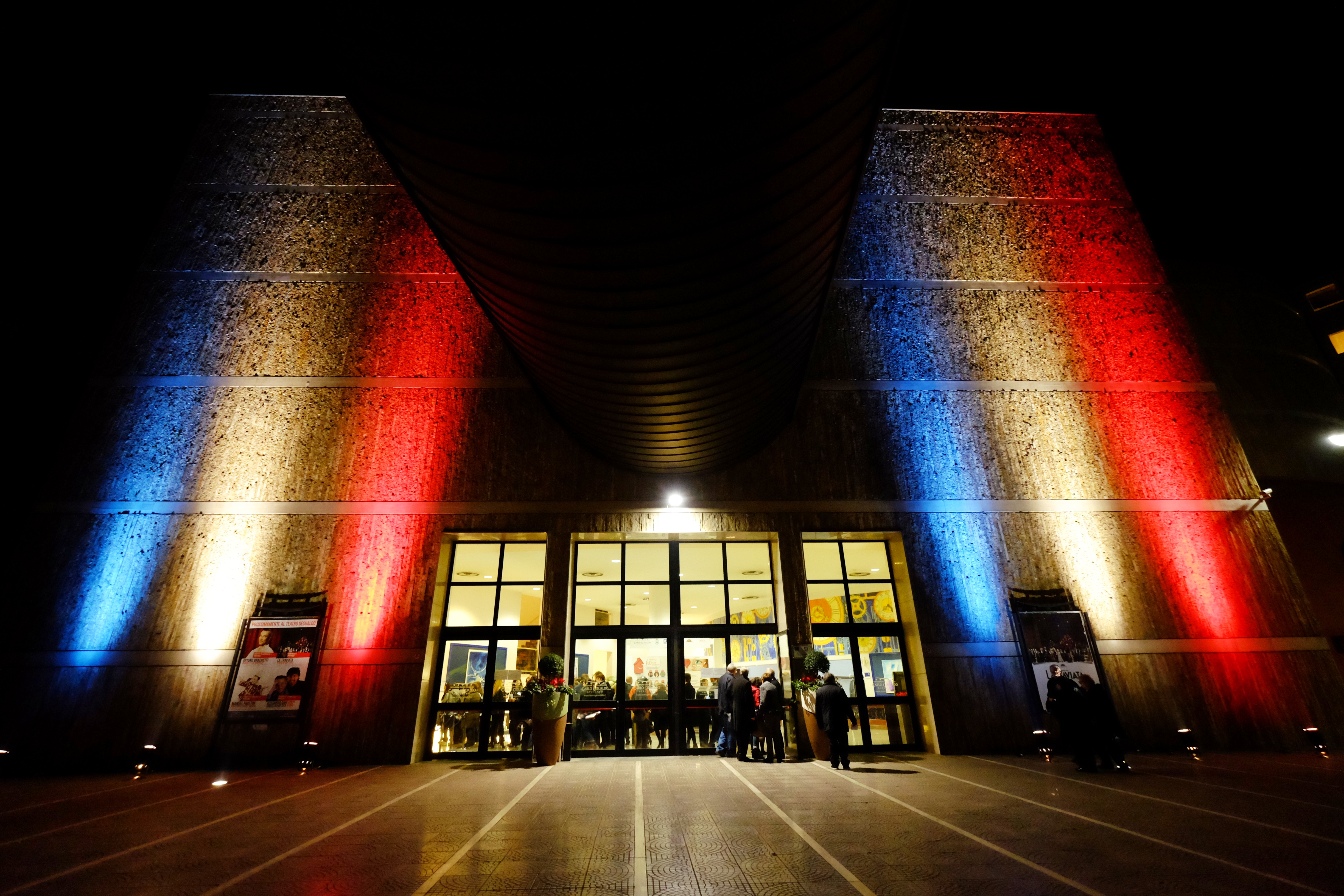 Il “Carlo Gesualdo”, il San Carlo di Napoli e il Teatro Pubblico Campano hanno voluto ricordare le vittime di Parigi illuminando la facciata del Teatro comunale irpino e il soffitto della platea con i colori della bandiera francese.