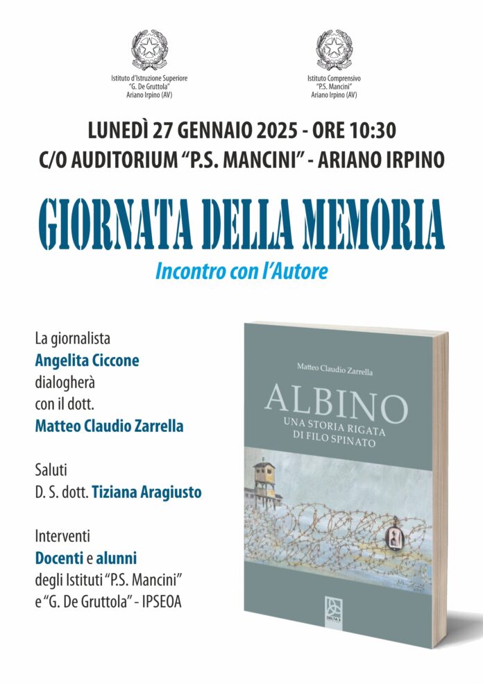 L’incontro vedrà la partecipazione dello scrittore Matteo Claudio Zarrella, autore del libro “Albino: Una storia rigata di filo spinato”, che racconterà la drammatica vicenda narrata nel suo volume. Il dialogo con l’autore sarà condotto dalla giornalista Angelita Ciccone, che guiderà il pubblico, composto da studenti e docenti degli istituti coinvolti, in una riflessione sul passato per comprendere le lezioni che esso può offrire al presente.
