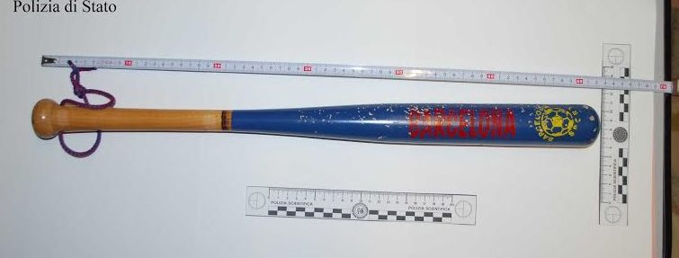 Gli agenti di Polizia, dopo aver effettuato un perquisizione personale con esito negativo, hanno dato il via ad un accurato controllo sull’auto grazie al quale hanno individuato una mazza da baseball, opportunamente celata nel bagagliaio. La mazza, di oltre 60 cm, come particolarità aveva stampato il logo di una blasonata squadra di calcio spagnola.