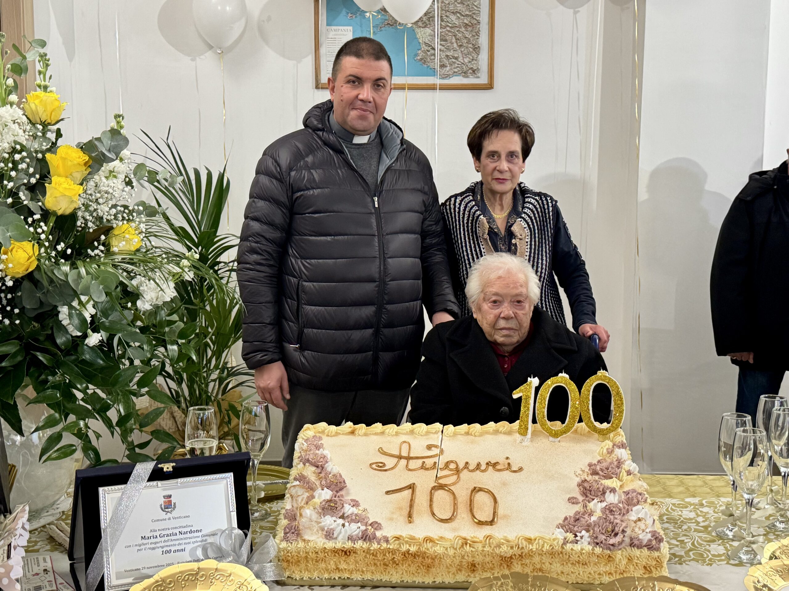 VENTICANO – Un traguardo straordinario per Maria Grazia Nardone, che oggi festeggia i suoi 100 anni. Nata a Pietradefusi, Maria Grazia vive attualmente a Venticano, dove ha costruito una vita ricca di affetti, valori e legami profondi con la comunità.
