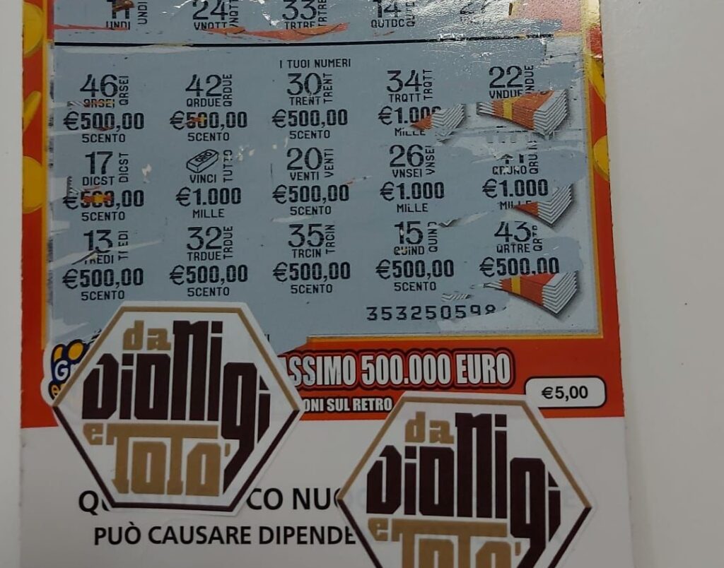 “Gratta” cinque euro e ne vince 10mila, settimana fortunata ad Ariano Irpino. La dea bendata, nel giro di pochi giorni, bacia ancora una volta la città del Tricolle e bacia ancora una volta forse il bar che, negli ultimi tempi, ha fatto registrare più vincite. Si tratta di “Da Dionigi e Totò” che si trova, per l’esattezza, a rione Martiri.
